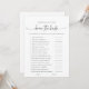 Você conhece bem a noiva? Jogo do chá de panela Torne o seu chá de panela inesquecível com o nosso jogo " Imintable How Good You Know the Bride?"! Este jogo divertido e interativo é o melhor quebra-gelo, reunindo convidados para celebrar a noiva em estilo. Recursos do jogo: Envolvendo questões: inclui uma variedade de perguntas sobre a noiva, de suas comidas favoritas às suas memórias de infância. Belo Design: design elegante e chique que ajustado perfeitamente com qualquer tema de chá de panela. Impressão de alta qualidade: impresso profissionalmente em papel premium para uma sensação luxuosa. Fácil de jogar: instruções simples facilitam a participação e a diversão de todos. Como jogar: distribua os cartões de jogo a todos os convidados. Peça-lhes que respondam às perguntas com base no conhecimento da noiva. A pessoa com as respostas mais corretas ganha um prêmio especial! Por Que Escolher Nosso Jogo? Perfeito para Chás de panela: Uma forma excelente de entreter convidados e celebrar a noiva. Personalizável: adicione o nome da noiva e a data do chá para um toque pessoal. Lembrete memorável: os convidados podem levar suas cartas para casa como recordação do dia especial. Divertido e interativo: mantém todos envolvidos e cria memórias duradouras. Adicione um toque pessoal e divertido ao seu chá de panela com o nosso jogo "Como você conhece a noiva?". Ordene a sua hoje no Zazzle e garanta que a sua celebração seja para lembrar!