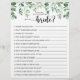Assim você sabe que o jogo da noiva de chá de panela é uma atividade perfeita para uma celebração de chá de panela rústico. A design apresenta um eucalipto verde, pintado manualmente, com aquarela, inspiradora beleza natural.