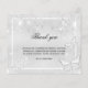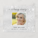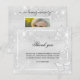 Um cartões de agradecimentos de simpatia simples e elegante com a foto. Um fundo metálico prateado sujo, uma estrutura branca, poeira brilhante fraca e borboletas na frente e no verso. Personalize e adicione sua nota de agradecimento. Texto preto.