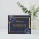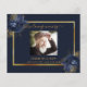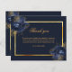 Um cartões de agradecimentos de simpatia simples e elegante com a foto. Um fundo azul marinho, uma falso armação de ouro e florais entrelaçados. Personalize e adicione sua nota de agradecimento.