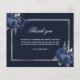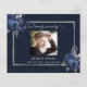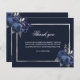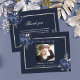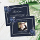 Um cartões de agradecimentos de simpatia simples e elegante com a foto. Um fundo azul marinho, um falso quadro prateado e florais azuis. Personalize e adicione sua nota de agradecimento.