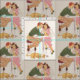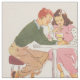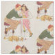Impressão retro bonito de um menino e de uma menina que compartilham de sodas no comensal. O impressão inspirado vintage do tecido está pronto para seu gênio criativo. Que você sew?