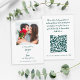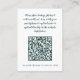 Cartão de informações de casamento simples, elegante e sofisticado apresenta um design minimalista em tom de joia verde esmeralda em um fundo branco crocante e um modelo para a foto de noivado personalizada de sua escolha. Os cartões pedem que os convidados do casamento compartilhem memórias fotográficas especiais do dia da celebração através da leitura do código QR ou enviando diretamente para o seu site. Personalize o design do evento de casamento com os primeiros nomes do casal e a data do casamento na frente, juntamente com um modelo de código QR moderno e escaneável para o seu site. Para obter os melhores resultados com este design, faça o download do seu código QR com um arquivo PNG de fundo transparente para evitar uma caixa branca ao redor do código. Por favor, RECORTE O SEU QUADRADO DE QR se ele ainda não estiver cortado antes de fazer o upload para um melhor ajuste. Use o link de mensagem ou envie um e-mail para invitationsuites@gmail.com com