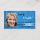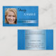 Um elegante cartão de visita de referência com sua própria foto enquadrado por um design azul estilizado. Bonita para um higienista dentário ou um belicista.