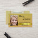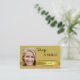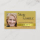 Um elegante cartão de visita de referência com sua própria foto enquadrado por um design dourado estilizado. Bonita para um higienista dentário ou um belicista.