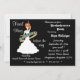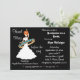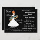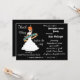 Um fundo preto com uma silhueta branca de uma noiva de cabelo vermelho dançando em uma banda de casamento adorna a frente deste convite. Muitos textos personalizáveis na frente para todas as informações de seu partido! Texto personalizável na parte traseira das informações do registro e instruções de direção ou quaisquer outras informações que você queira adicionar. Comprar em massa e guarde!