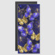 Composição de borboletas luxuosas de safira e joias de ouro em fundo azul texturizado.