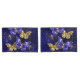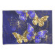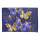 Composição de borboletas luxuosas de safira e joias de ouro em fundo azul texturizado.