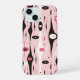 Este trabalho de arte apresenta um padrão abstrato de formas alongadas, semelhantes a gotas, em vários tons de rosa, preto e branco. As formas do fluido esticam-se verticalmente através da canvas, criando uma sensação de movimento e fluxo. O design inclui uma mistura de curvas macias e bordas afiadas, com algumas formas semelhantes a olhos ou formas orgânicas. As cores contrastantes e a repetição rítmica dos elementos conferem à composição uma qualidade dinâmica e quase hipnótica. O efeito geral é brincalhão e surreal, misturando motins orgânicos e abstrato.