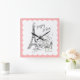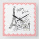 Um giro giro bonito comprando em Paris, na França, relógio com a Torre Eiffel com calçados chic e na moda, caixas de calçado e corações em fundo branco com fundo polca cor-de-rosa pontilhado. Nosso relógio de parede de Paris seria um excelente adicional para qualquer sala pertencente a um motista! Disponível em nosso compro em uma grande variedade de cores.