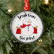 Um adorável e festivo ornamento "Break from the Grind" com sacos de carregando de neve. Esta design capta o espírito de feriado e sugere uma divertida e relaxante propagação comprada como forma de escapar à rotina diária.