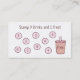 Um chá de bolha compra cartão de visita com um rabisco de chá de leite de bolha com muitas pérolas de boba. O slogan diz "artesanal com amor", que você pode mudar para a preposição exclusiva de vendas do seu compro. Ao contrário, há um cartão de prêmios de fidelidade, projetado em forma de bobinas, para recompensar clientes que comprar 9 chás de bolha para receber 1 bebida grátis.