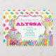 Seu doce pequeno aniversário é ter um aniversário, por que não fazer a festa tão doce quanto ela é e enfatizá-la com um tema de doce. Doces em cores do arco-íris em todos os lugares que você olha. Gumballs, geleias, doces e outros são apresentados neste convite colorido perfeito para celebrar o mais doce pequeno que você conhece.
