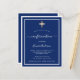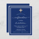 Um moderno, elegante e convidativo. Um fundo azul marinho decorado com molduras brancas e uma cruz dourada. Personalize e adicione um nome e detalhes. Texto branco.