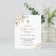 Um fundo branco decorado com um verde de eucalipto, peônia branca, folhas douradas. Personalize com nome e detalhes da cerimônia. Letras pretas e douradas.
