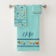 Este conjunto de toalhas foi projetado com uma borda de conchas e listras em um fundo aqua (azul de espuma do mar). Use a opção Personalizar para adicionar suas próprias iniciais ou vazio-as para um conjunto de toalhas genérico. Use a opção Personalizar para alterar a fonte e/ou reposicionar o texto, se necessário. Veja na minha loja outras combinações de cores desta design e coordenando a decoração do banheiro. Se você quiser vazio as iniciais em apenas um ou dois dos itens do conjunto, use a opção Personalizar e oculte as camadas de letras no produto desejado.