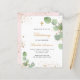 Um fundo branco decorado com verde de eucalipto e pó de ouro falso. Personalize e o nome e os detalhes da cerimônia. Letras pretas e ouros coloridas. Traseira: fundo cor-de-rosa pincelado com poeira brilhante de falso ouro.