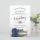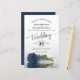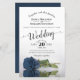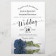 Este belo convite para casamento de barato ou orçamento apresenta uma design romântica com um solteiro de aço de longo curso ou rosa de cor azul empoeirada que se põe ao seu lado e que reflete numa piscina de água. A tipografia apresenta caligrafia de script e um layout sofisticado. A parte de trás é uma cinza azul marmoreada. Uma maravilhosa maneira de convidar seus amigos e família para compartilhar sua alegria em seu dia especial.