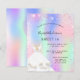 Um convite moderno, na moda e glamouroso para uma doce festa de aniversário 16, 16. Um fundo holográfico cor-de-rosa, roxo e verde-menta, com brilho rosado sujo, faíscas e um vestido branco. O nome é escrito com um moderno estilo escrito à mão. Personalize e adicione os detalhes da sua festa.