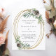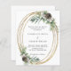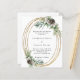 Para um casamento no inverno. Um fundo branco decorado com cones, bagas brancas e verde. Uma falsa armação de ouro. Personalize e adicione seus nomes e detalhes. 1 folha = 1 convite impresso de borda a borda.