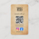 Este é um pergaminho castanho infiltrado e colorido que se conecta com o modelo de cartão de negócios que tem os ícones Instagram e Facebook na parte inferior frontal e o nome de usuário para suas contas abaixo dos ícones. Seu site é mostrado abaixo do código QR. Você pode vincular qualquer URL ao código QR, depende de você. O modelo mostra um site, mas você pode mudar isso em uma página de mídia social, uma página de reserva, um link de portfólio. Para a seção de logotipo, você pode ter uma imagem de logotipo, uma imagem de cabeçalho ou outra imagem. As possibilidades são infinitas. No verso, você tem seu logotipo e informações comerciais. Se você precisar de ajuda com seu design ou precisar de ajuda para adicionar ícones sociais diferentes, basta clicar no botão de mensagem e eu voltarei rapidamente a você para ajudá-lo. Obrigados, Sandy