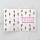 Esses cartões de aniversário apresentam uma divertida pintura de cones de sorvete, em quatro sabores, e fitas nas mesmas cores. Feliz Aniversário é a saudação na frente do cartão; este texto é escrito em verde. O texto interno diz: Que seu aniversário seja cheio de todos os seus sabores favoritos, e está escrito em rosa. Ambos os textos podem ser personalizados com sua própria saudação e mensagem. A cor do fundo é branca e também pode ser personalizada. Obrigado por comprar CherylsArt na Zazzle.