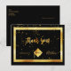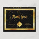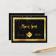 Um cartões de agradecimentos para o formando. Uma cor preta de fundo e uma imagem falsa de ouro. Com um ouro de chuva confete. Na frente, um estilo escrito à mão e o texto: Obrigado! Formando 2020 e boné de formatura, chapéu. Back: Modelo para sua nota de agradecimento e seu nome. Fundo preto. Este cartão também está disponível em nossa loja sem cor de fundo.