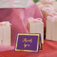 Uma cor de fundo púrpura cúbica e uma imagem falsa de ouro. Com um ouro de chuva confete. Na frente, um estilo escrito à mão e o texto: Obrigado! Dentro: Modelo para sua nota de agradecimento e seu nome