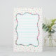 Pintura do divertimento de confetes coloridos como uma beira, impressa em artigos de papelaria alinhados.