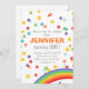 Maneira perfeita do ♥ A de convidar seus convidados ao seu pequeno seu primeiro aniversário! Tema da festa de aniversário do arco-íris com confetes coloridos.