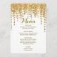 Este menu moderno e sofisticado do comensal dos confetes do ouro pode ser personalizado. Você pode mudar a pia batismal e as cores da maioria do texto assim como da cor do fundo. Projetado por Amelia Carrie e vendido exclusivamente através da nota de GlitterInvitations.com: Este é uma reprodução ou uns trabalhos de arte gráficos do impressão e não contem nenhum brilho desarrumado.