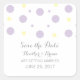 Confetti giro e giro Salve os adesivos com pontos de confete divertidos em roxo e amarelo. Essa simples e moderna salvação da data pode ser facilmente personalizada com suas informações de casamento. Localize mais opções de personalização clicando em Personalizar.