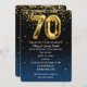 Balões mylares Dourados com estrelas confetti em azul-gradiente e preto para o aniversário de casamento da 70.