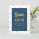O glamouroso casamento promete renovar convites em azul escuro marinho e branco com padrão dourado confetti e texto de vintagem estilo manuscrito. Texto personalizável para incluir os detalhes da sua cerimônia de renovação de votos.