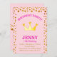 Belo confete de ouro e convite de aniversário da coroa. Bolinhas de ouro adoráveis em fundo rosa. O verso tem uma banda de bolinhas douradas e o número 15 que também pode ser personalizado em fundo rosa. Todos os textos e números podem ser personalizados.