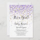 Elegante falso Dourado e Purple Confetti É um convite para Chá de fraldas de Rapariga com tipografia na moda. Sacudir nosso convite para ver uma correspondência de volta para um toque especial. Fácil para você personalizar com suas informações de chá.