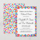 Os convites para o ensaio de casamento de confetti coloridos e divertidos jantam em vermelho, rosa, azul, verde, amarelo e branco para casamentos modernos, quentes e não tradicionais ou ultrapassados!