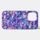 Camadas de confete redondo espalhado em roxo, turquesa, azul e rosa.