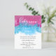 Um brilhante e colorido Sexo Bebê Revela Convite de festas. Em um fundo branco, a fumaça azul e rosa e o confete brilhante cai lentamente em volta do texto da tipografia que lê Baby Your Surname (Seu sobrenome de Bebê). Personalize adicionando os detalhes do evento de cheio à frente e atrás.