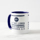 Caneca de café azul e branco do tom dois com escritura: Confiança do 3:5 dos provérbio no senhor Com Todo Seu Coração. Este verso da bíblia coloca a fundação para a força, a coragem e a rendição. Um presente de aniversário pensativo ou presente do Natal especialmente para alguém que está atravessando águas ásperas.