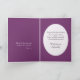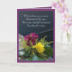 Este cartão de compaixão de esperança e conforto mostra um belo buquê de flores roxas e amarelas descansando no banco corrido de um barco a remo. As palavras na frente deste cartão dizem, "Não sabemos, não podemos ver a sabedoria de Sua maneira. Mas devemos confiar que a mão amorosa de Deus está guiando todos os nossos dias." As palavras dentro dizem, "Porque através das sombras mais escuras Sua luz amorosa nos levará, a nos dar fé por todas as dúvidas e forças para todas as necessidades. Com Sincera simpatia." Na dentro à esquerda está o verso Bíblia Matthew 5:4 que diz, "Abençoados são aqueles que choram por que serão confortados."