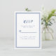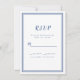 Cartão de confirmação de casamento simples e elegante apresenta um design minimalista com uma borda de moldura dupla em azul clássico sobre um fundo branco crocante. Personalize com a data do seu casamento. Espaços fornecidos para o seu convidado adicionar seus nomes e respostas para uma resposta de retorno. A letra e o script estão no azul clássico correspondente. O verso do cartão é azul clássico sólido correspondente.