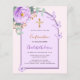 Um fundo rosa corado com um arco. Decorado com uma flor de rosa floral roxa, violeta, verde eucalipto verde aquarelado e borboletas. Personalize e adicione um nome e detalhes.