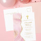 O rosa elegante e o ouro enfeitam este bonito convite personalizado para a cerimônia cristã de uma menina. Personalize com um nome e detalhes sob a bela cruz para um convite de um partido religioso chinês.