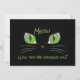 Convites de festas temáticos de Gato apanhador de olhos apresentando uma ilustração original de um gato preto com olhos verdes agudos, nariz vermelho agudo e whiskers brancos para sua personalização ou personalização além disso.