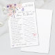 Uma vida de borboletas, como você conhece a noiva? Jogo. Adicione uma atividade divertida e caprichosa ao seu chá de panela com este jogo de perguntas encantador, perfeito para uma celebração temática "A Lifetime of Butterflies". Os hóspedes podem testar quão bem conhecem a noiva respondendo a uma série de perguntas pessoais e divertidas, escrevendo suas respostas nos espaços fornecidos. O design apresenta flores silvestres de aquarela delicadas com borboletas rosas e roxas fluindo graciosamente ao redor do jogo. A paleta de cores inclui pincéis suaves, rosa empoeirado, lilás, lavanda, violeta e verduras frescas para um olhar sonhento e romântico. O texto do jogo é exibido em uma mistura de um script elegante manuscrito e fontes serif limpas, fazer-o na moda e fácil de ler. Totalmente personalizável, você pode editar as perguntas, fontes e cores para corresponder perfeitamente ao seu tema de chá de panela. Esta atividade adiciona um toque doce e brincalhão para celebrar a futura noiva.