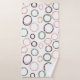 Este conjunto de toalhas tem uma toalha de banho com um design de Boho de círculos sobrepostos em cor-de-rosa, roxo, verde-musgo e laranja-caramelo, um pano de lavagem roxo e uma toalha de mão verde.