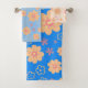 Conjunto de 3 Toalhas de Banho do Padrão Floral Retro Definido por Pomo de Sonho. A mistura e combinação de cores calmas de azul brilhante, azul macio e cor laranja suave, criam uma bela harmonia. Flores cor de laranja de padrão de safra com tons de serenidade, presente perfeito para aqueles que amam flores e romântico no coração!