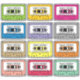 Conjunto de ícone de fita cassete de áudio Vintage. Vinhetas de contorno. Ícones vetoriais com cores personalizáveis. Dois campos de texto personalizados.