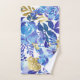 Conjunto de toalhas de banho floral azul e dourado elegante.